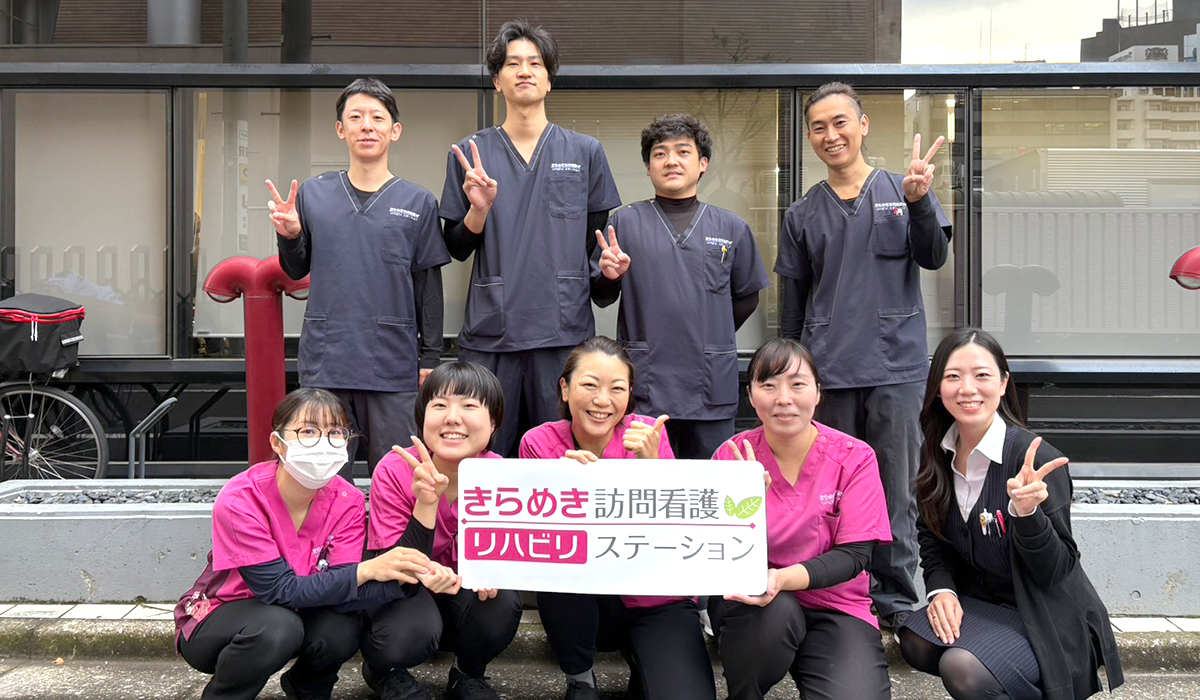 また、訪問スタッフのみんなもいきいきと働いており、毎日を充実して過ごすことができています。今までの経験で培った知識や技術を、最大限発揮できる環境を作ることで、働くスタッフも、リハビリを行うご利用者様も幸せになり、幸せになる皆さんをみて私が幸せになる、そんな素晴らしい環境で働けているため、きらめきに入職して良かったと日々思っています。