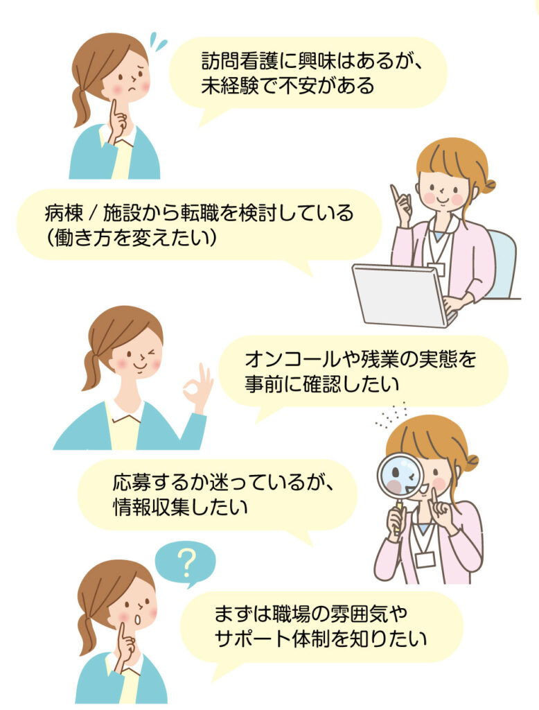 仕事内容・1日の流れ・オンコール・教育体制など、気になることを“短時間で”確認できます。