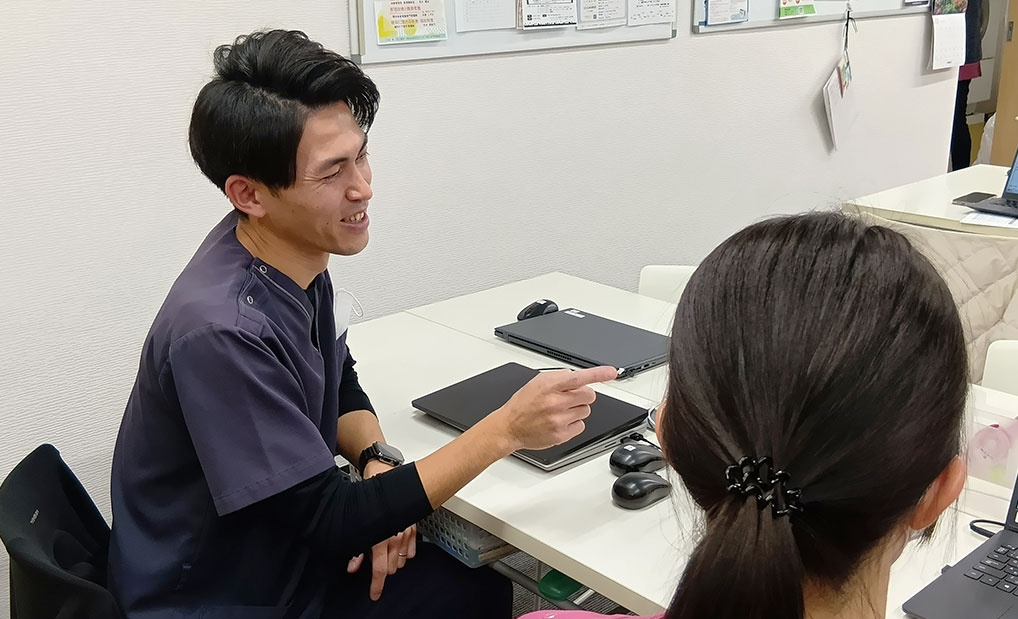 多くはありませんが指定難病疾患や呼吸器疾患の方もいらっしゃるので、困難症例は看護スタッフ含めたスタッフ全員でディスカッションをしながらトータル的に支援をしています。