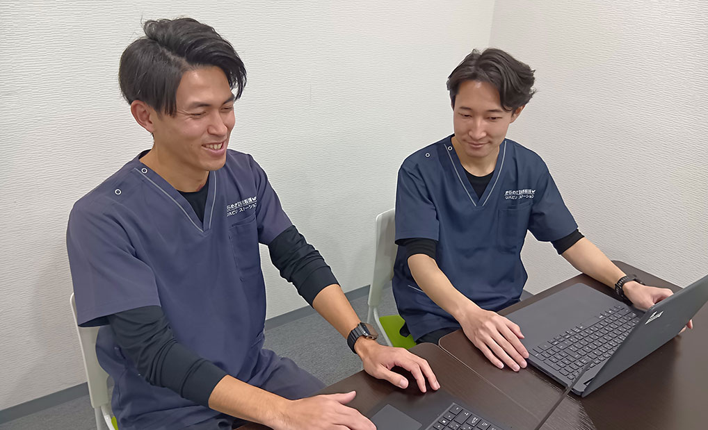 下赤塚事業所のリハビリスタッフは、私と同じように病院等の医療機関から転職をされてきた30歳前後のスタッフが大半になります。